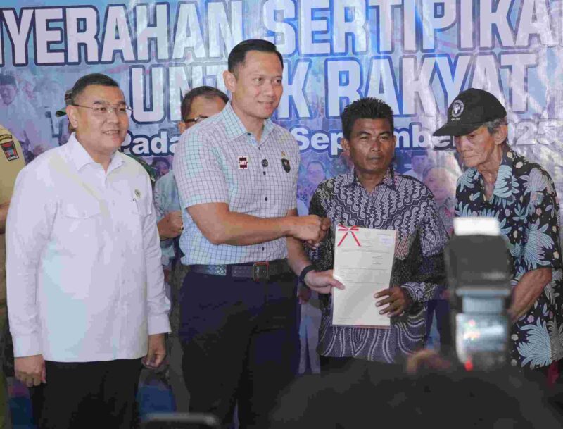 Berita Padang, Asajabar.com – Kementerian Agraria dan Tata Ruang/Badan Pertanahan Nasional (ATR/BPN) menegaskan komitmennya dalam menghormati dan melindungi tanah ulayat di Indonesia. Hal ini diwujudkan melalui program sertipikasi tanah ulayat atau tanah masyarakat hukum adat, yang disampaikan Wakil Menteri ATR/Wakil Kepala BPN, Ossy Dermawan, pada kegiatan Penyerahan Sertipikat Tanah untuk Rakyat di Kerapatan Adat Nagari (KAN) Kuranji, Kota Padang, Selasa (30/9/2025).