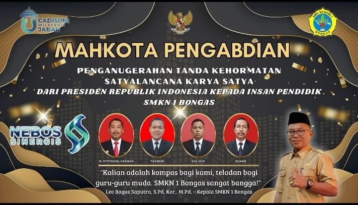 Indramayu, Asajabar.com – Empat guru SMKN 1 Bongas, Kabupaten Indramayu, menerima Tanda Kehormatan Satyalancana Karya Satya sebagai bentuk apresiasi negara atas pengabdian panjang mereka di dunia pendidikan. Penghargaan tersebut diberikan melalui Cabang Dinas Pendidikan Wilayah IX Jawa Barat dan merupakan anugerah resmi dari Presiden Republik Indonesia.