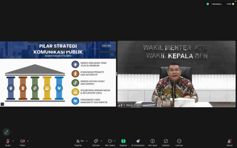 Berita Jakarta, Asajabar.com – Wakil Menteri Agraria dan Tata Ruang/Wakil Kepala Badan Pertanahan Nasional (Wamen ATR/Waka BPN), Ossy Dermawan, memaparkan lima pilar utama strategi komunikasi publik sebagai panduan bagi seluruh jajaran Humas ATR/BPN di Indonesia. Penyampaian ini disampaikan dalam Sosialisasi Strategi Komunikasi Publik, Informasi Publik, dan Layanan Pengaduan yang digelar secara daring pada Senin (21/07/2025).