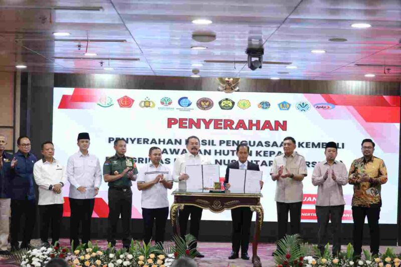Sebagai bentuk komitmen, dilakukan penandatanganan Berita Acara Penyerahan (BAP) penguasaan kembali TN Tesso Nilo oleh Satgas PKH. Penandatanganan diwakili oleh Jaksa Agung Burhanuddin dan Menteri Lingkungan Hidup/Kepala BPLH, Hanif Faisol Nurofiq. Turut hadir sebagai saksi, Menteri ATR/Kepala BPN Nusron Wahid dan Gubernur Riau Abdul Wahid.