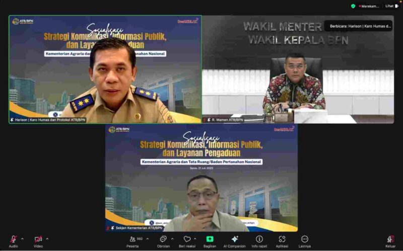 Berita Jakarta, Asajabar.com – Sekretaris Jenderal Kementerian Agraria dan Tata Ruang/Badan Pertanahan Nasional (ATR/BPN), Pudji Prasetijanto Hadi, menekankan pentingnya peran Kantor Wilayah (Kanwil) dan Kantor Pertanahan (Kantah) di seluruh Indonesia sebagai perpanjangan tangan komunikasi publik kementerian di daerah. Hal ini disampaikan dalam Sosialisasi Strategi Komunikasi Publik, Informasi Publik, dan Layanan Pengaduan yang digelar secara daring pada Senin (21/07/2025).